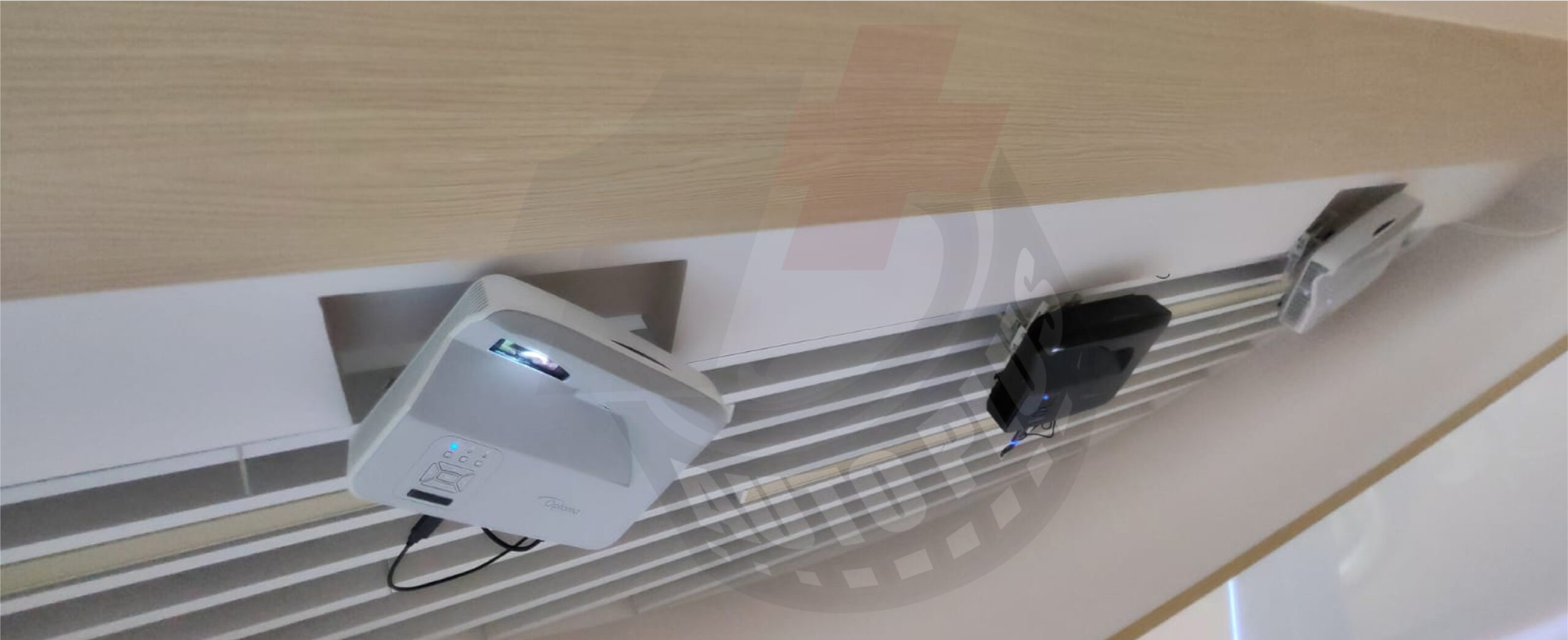 而活動室空間所限,投影距離因而有所影響。最後AutoPlus工程團隊建議選用三部Optoma鐳射超短焦商務投影機作為裝置,再經我們專業團隊調整融合畫面,三機合成為一個畫面,完美完成這項高難度投影工程!