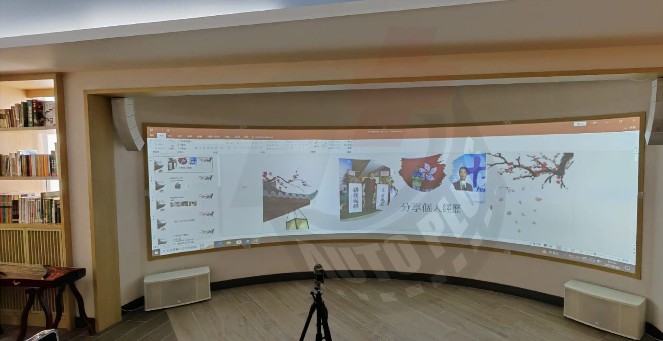 客人特別要求希望將影像投射在活動室內其中一幅呈弧型的牆身上,營造成一幅特色牆。
