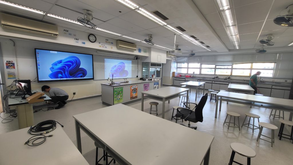 港大同學會書院他們課室內的互動顯示屏壞了,需要更換。但他們原先使用互動屏的品牌,過往有經常維修,與及顯示效果未如理想,於是聯絡了AutoPlus團隊,有沒有其他品牌互動顯示屏選擇。