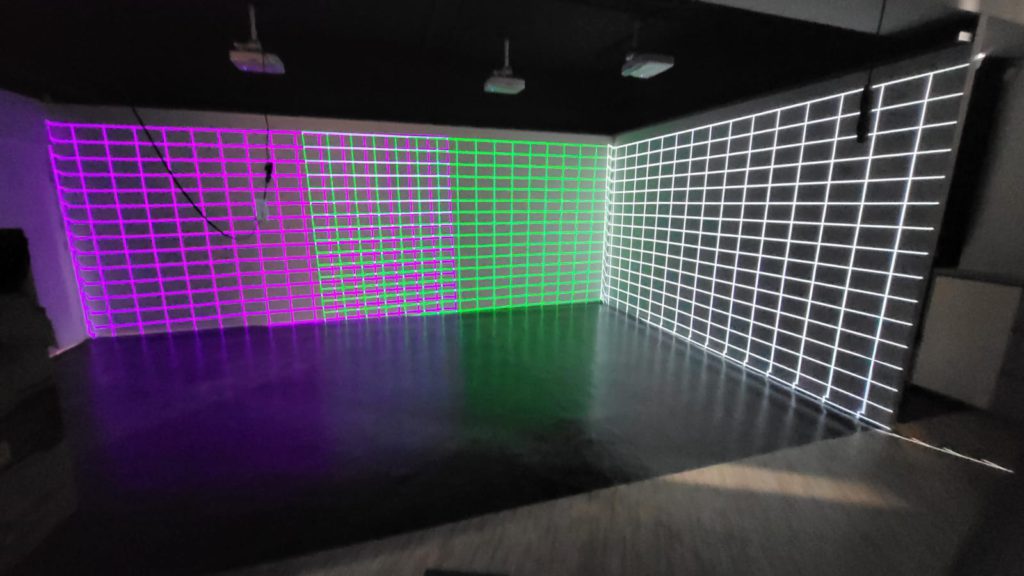 採用3部Optoma KZU600USTe 超短焦超高流明商用雷射投影機,再將各投射出的影像融合一起,然後直投影於兩面白色牆上身,完全衝擊你的視聽感受。
