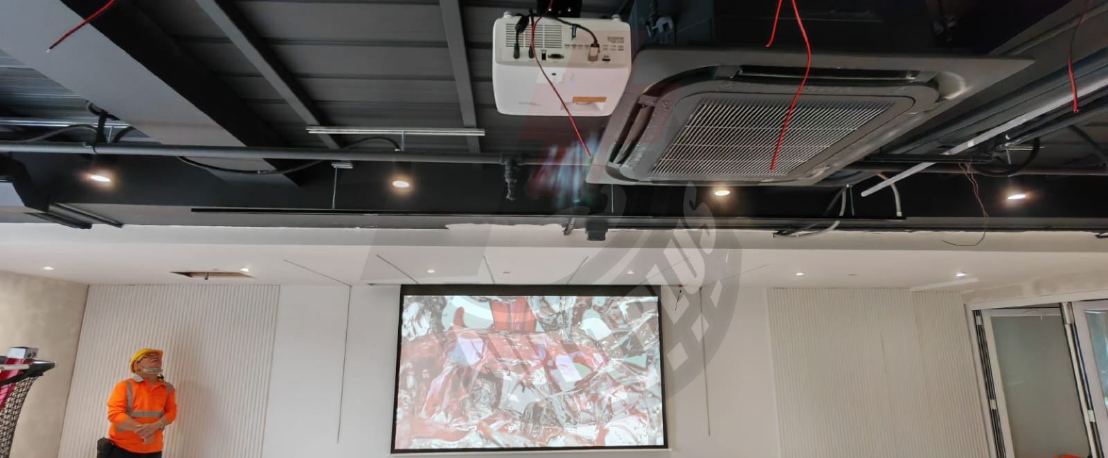 這次工程前我們就預先額外搭構支架於天花,用以加固懸掛投影機及喇叭之用。