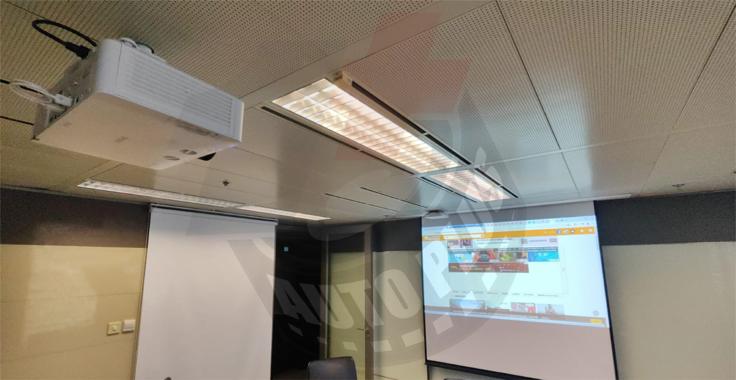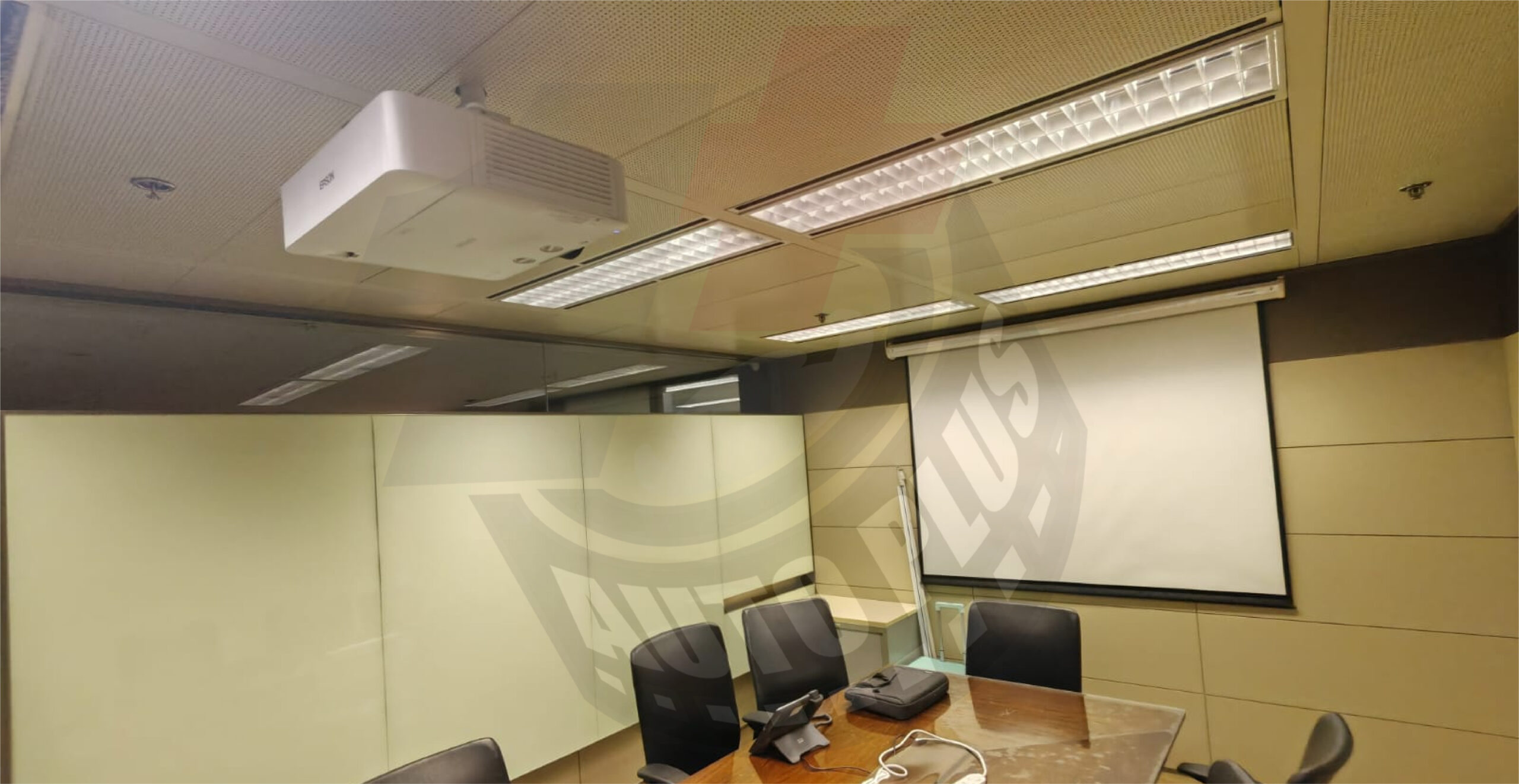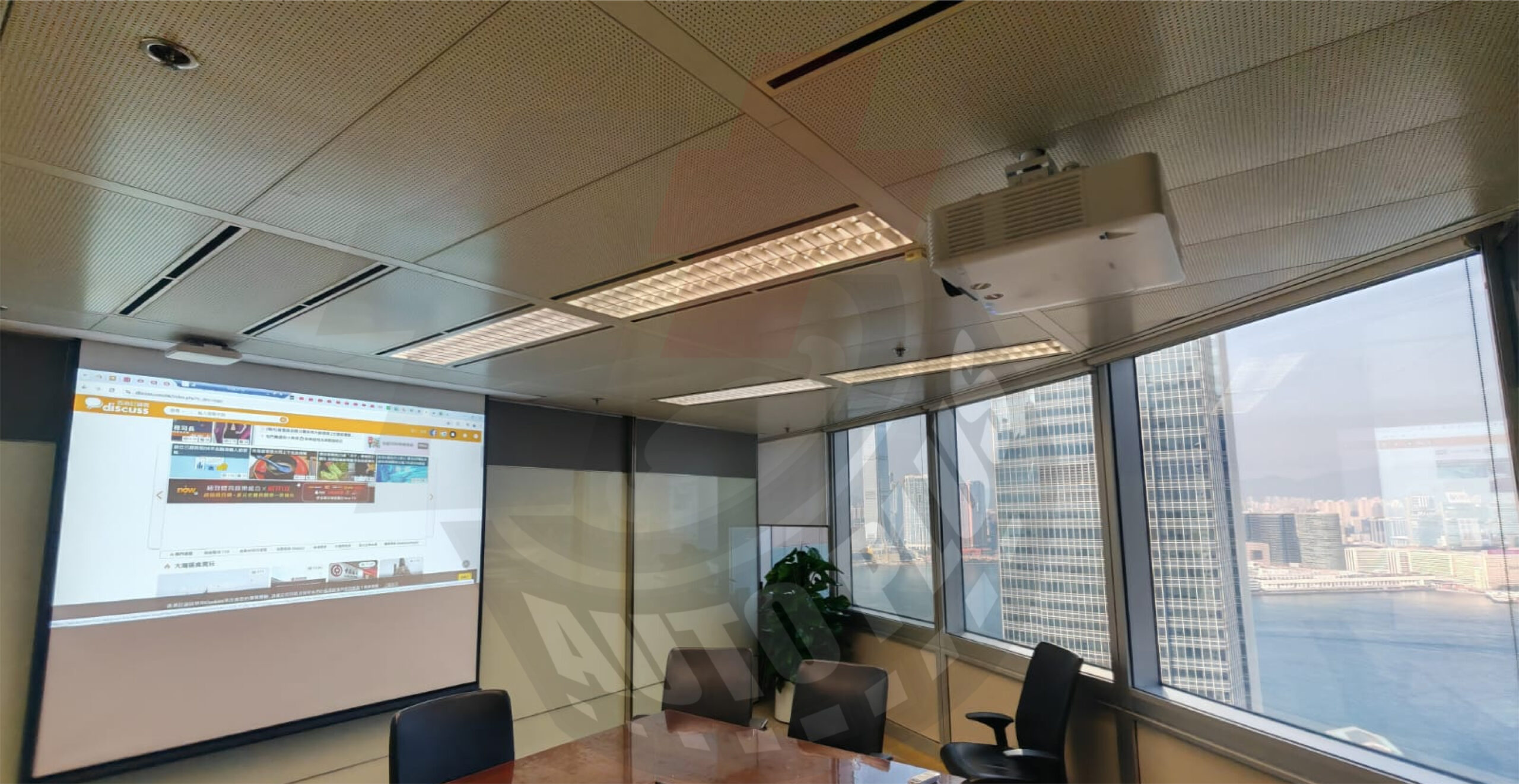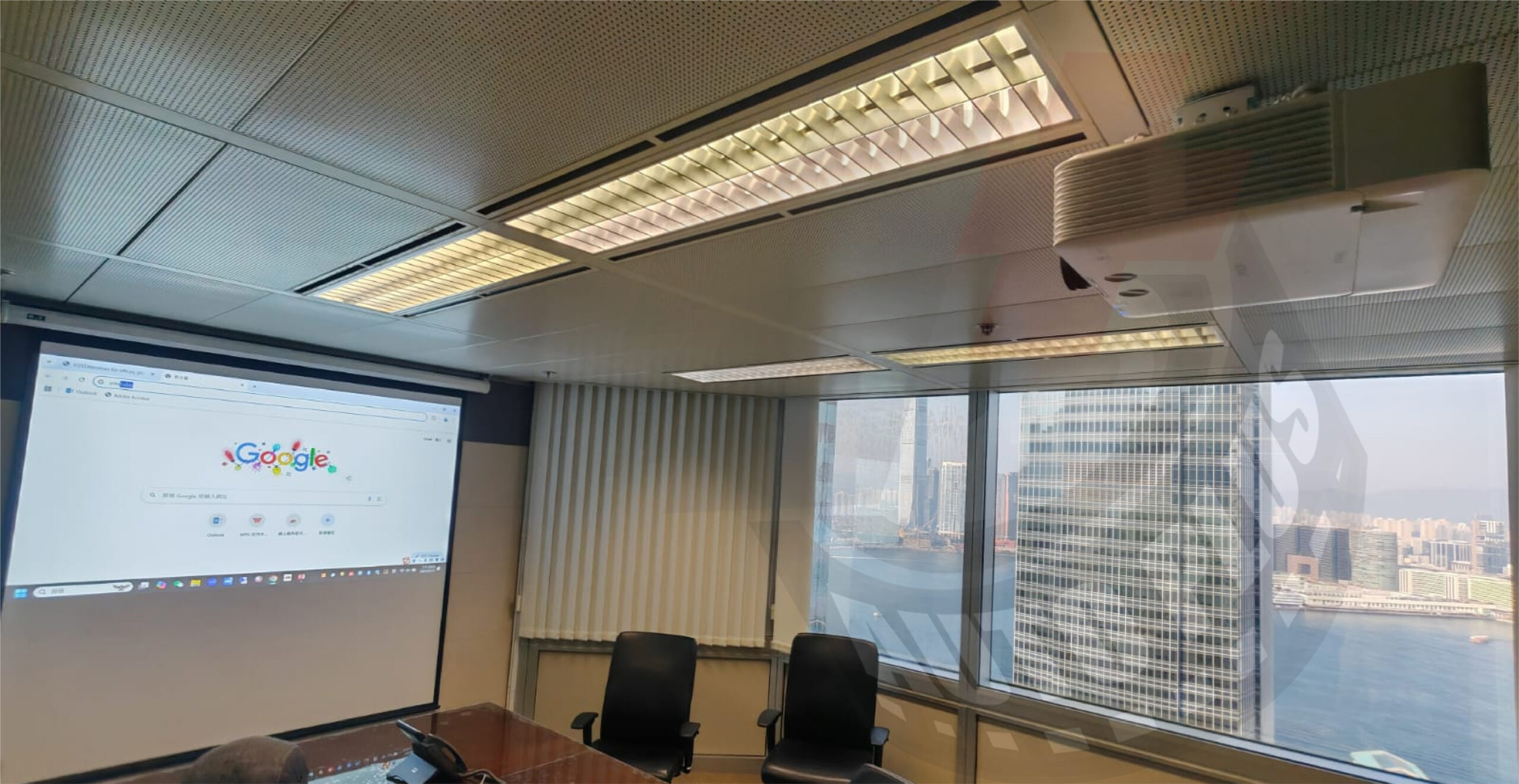 工程團隊留意到會議室光線十分充足,而且投影機使用次數十分頻密,於是我們建議選用商務型雷射投影機,一來亮度較高,可以在開燈情況下使用。二來雷射光源比舊有燈泡壽命更長,適合商業用途採用。