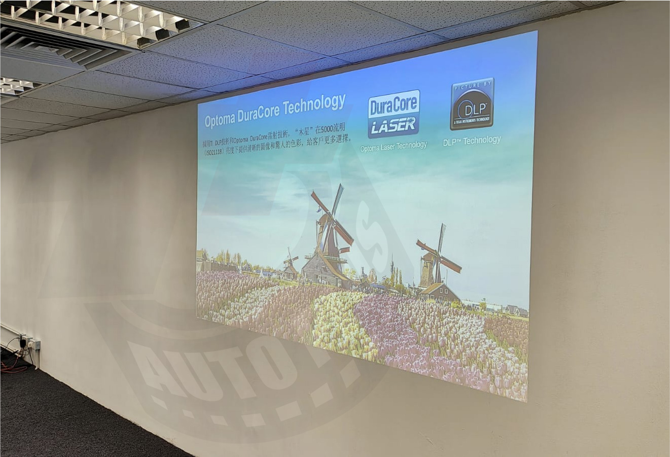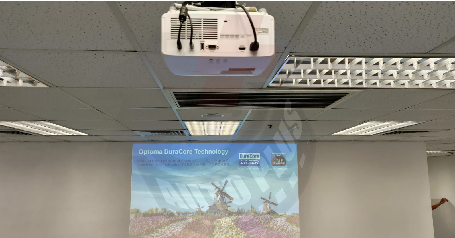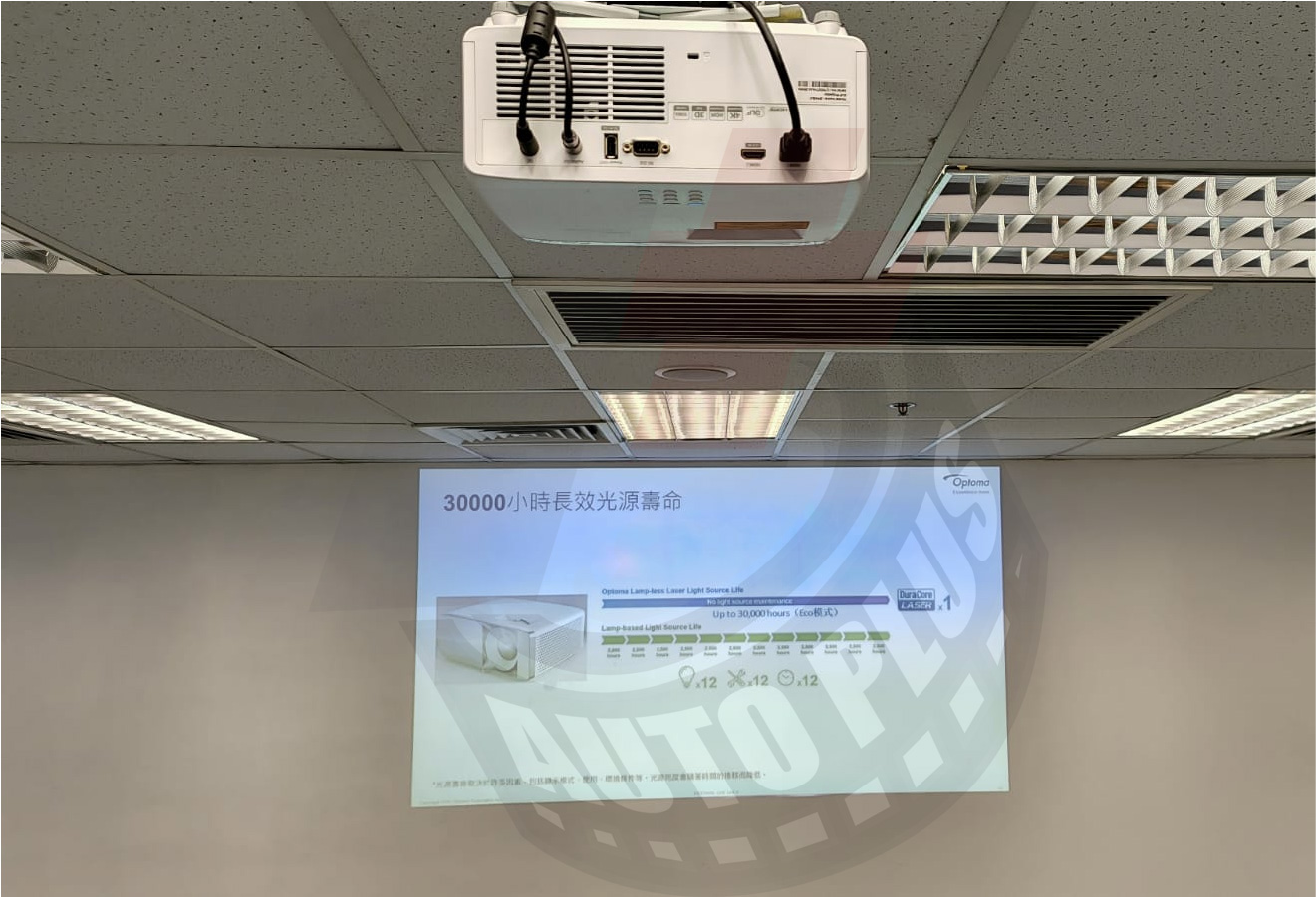 這情況就必須使用高流明的款式投影機,同時需考慮校方的維護成本,最後我們為他們裝設Optoma寰宇激光系列: