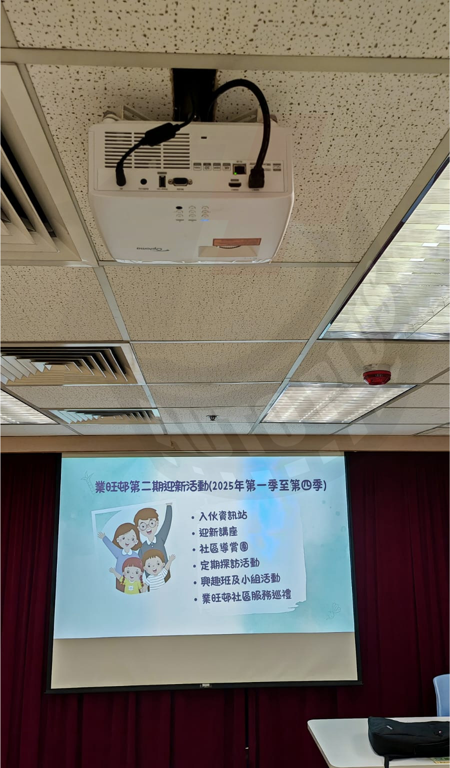 這次政府轄下一社福機構,位於九龍區的社區中心內,需要進行投影機升級工程,他們也因上述的優點,挑選了Optoma「寰宇激光系列」的HZ60LV高亮度商用投影機.