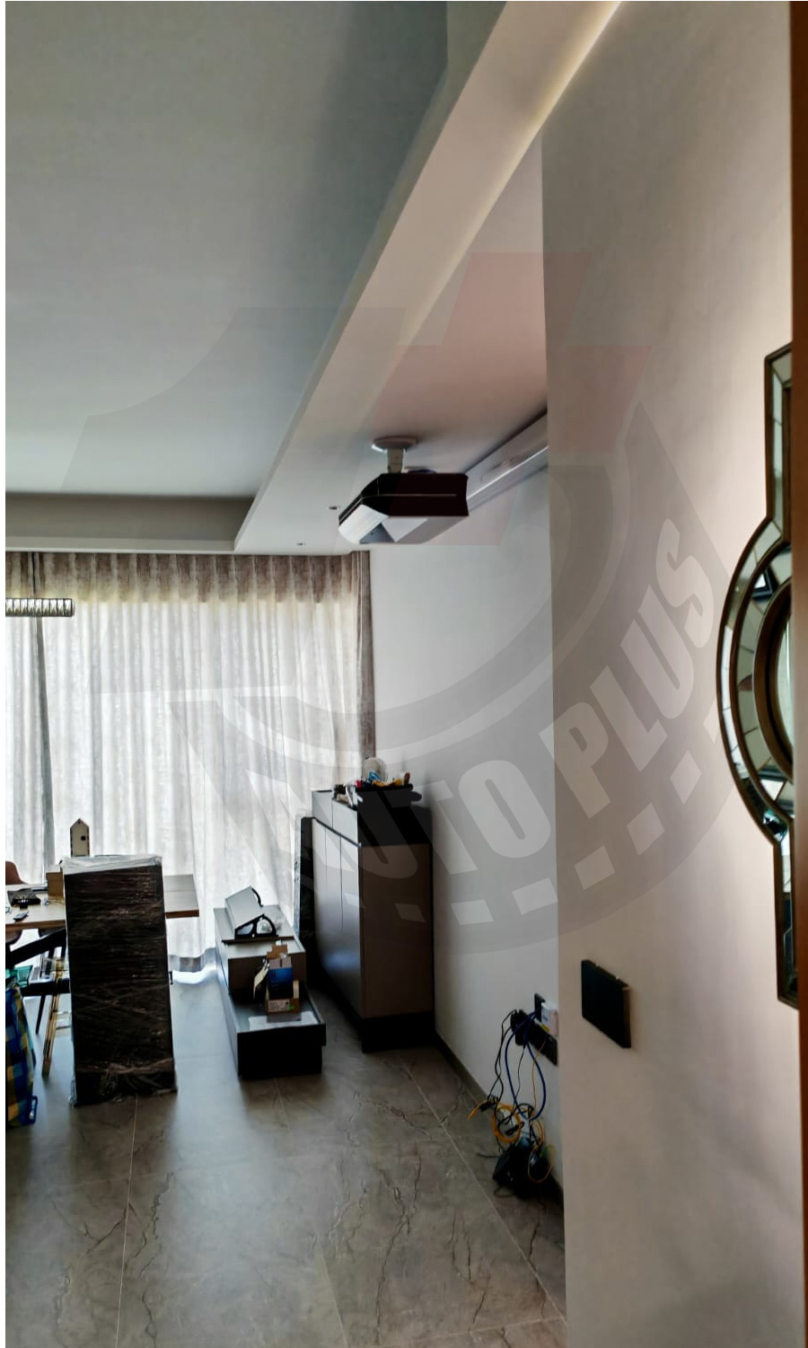 客人新居中的客廳及影音房匀需裝設投影機,而客人希望使用超短焦投影機取代電視的功用。