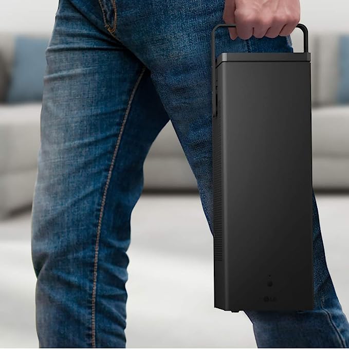Set up with 4K projector almost anywhere. Place it on a tabletop or the floor and move from room to room (or building to building) as needed for work or fun.