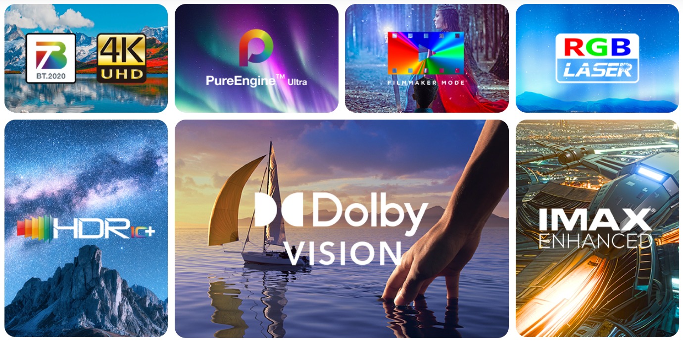 升級您的家庭影院,採用 4K UHD、5,000 流明的三雷射 RGB 投影機,具備杜比視界(Dolby Vision)、IMAX enhanced、Filmmaker mode 、HDR10+ 和 PureEngine™ Ultra。體驗前所未有的亮度、對比度和色彩,帶來無與倫比的電影觀賞體驗。